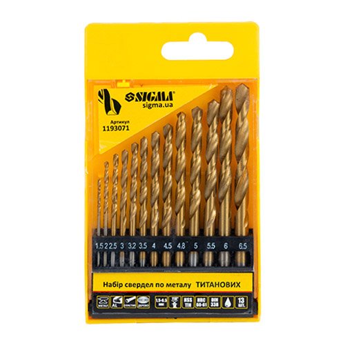 Набір свердел по металу Sigma HSS-TIN титанових 13шт Ø1.5-6.5мм (пласт кейс) 1193071, шт