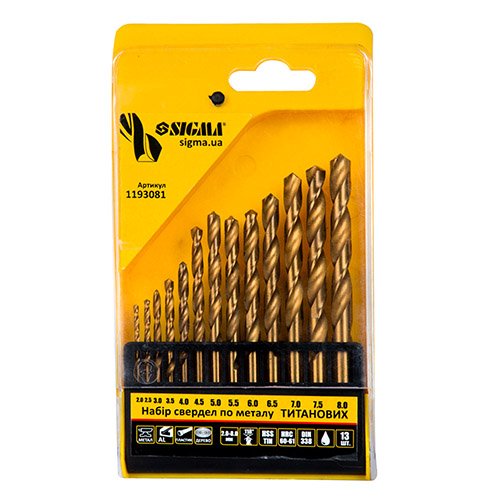 Артикул: 117625Набір свердел по металу Sigma HSS-TIN титанових 13шт Ø2.0-8.0мм (пласт кейс) 1193081, шт