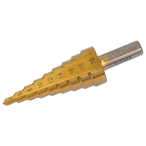 Свердло Sigma по металу східчасте HSS-TIN титанове зі спіральною канавкою Ø4-20мм, крок 2мм (блістер) 1183051, шт